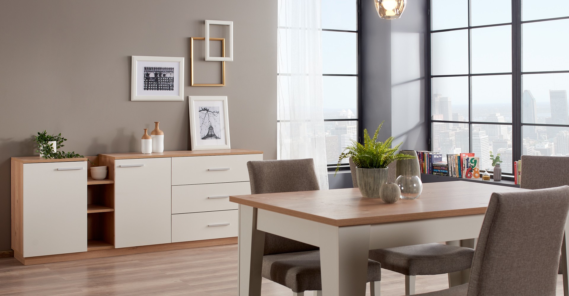 With its open light tones, unique design, and excellent craftsmanship, the Hillary Dining Room offers aesthetics that touch your soul. Hillary Dining Room, with its specially designed large mirror that complements the set, adds spaciousness to your living rooms and enhances the harmony of broken white and wood, enriching your decoration.